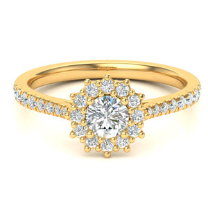 This 0.50ct Round Brilliant Cut Micro-Set Cluster Ring combines precision craftsmanship with exquisite detail. Crafted in 18ct yellow gold, it features lab-grown diamonds graded D color and VVS2 clarity, offering exceptional brilliance and ethical assurance. A natural diamond option is also available for those seeking traditional luxury. Perfect for anyone valuing both quality and sustainability in fine jewelry.