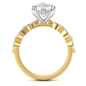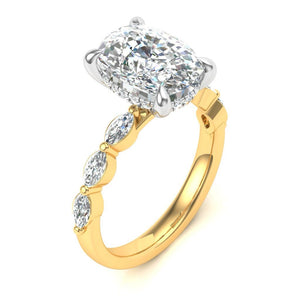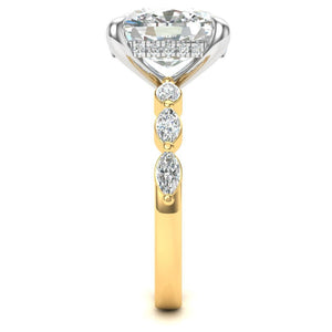 3.00ct Cushion Cut Diamond Hidden Halo Ring With Marquise And Round Brilliant Diamond Shoulders